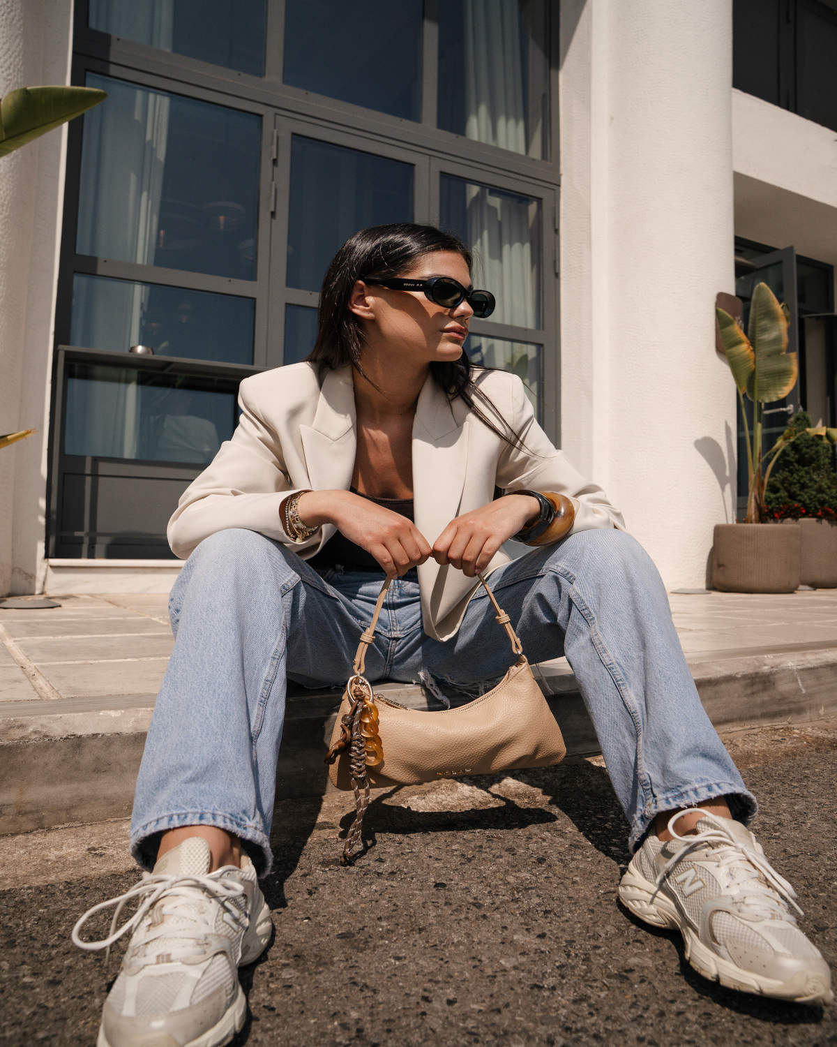 LINA BEIGE LIGHT GOLD – Τσάντα ώμου & χιαστί